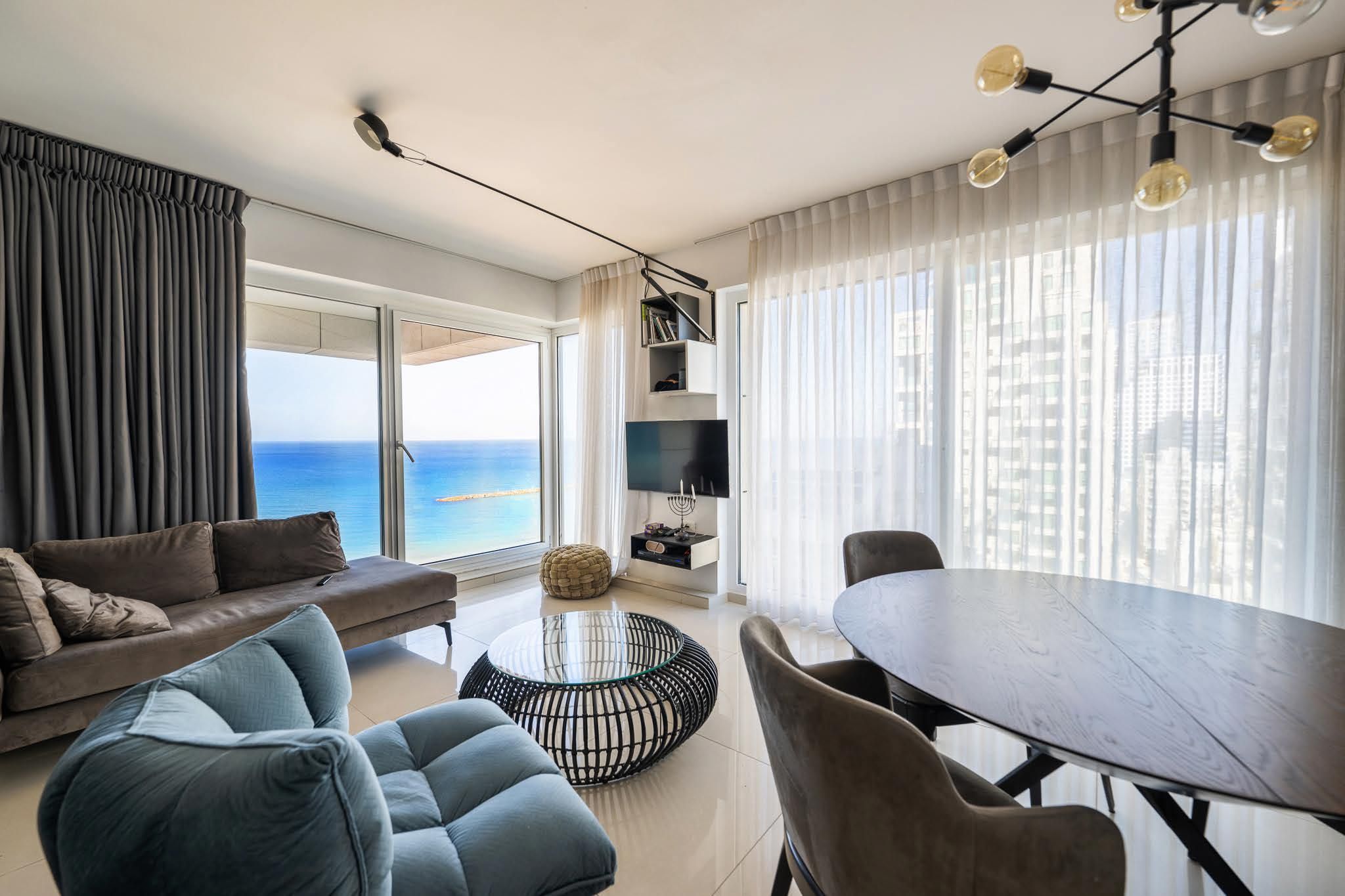 קו ראשון לים! למכירה דירת 2.5 חדרים + 2 חדרי רחצה. חניה. מרוהטת קומפלט. נוף נהדר לים. בניין יוקרתי עם בריכה ועוד. דמי ניהול וארנונה כ- 3000 ש"ח לחודש.